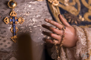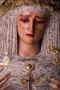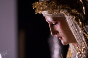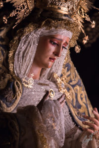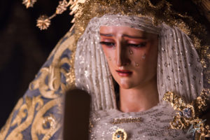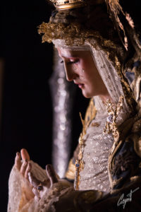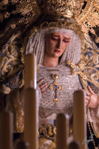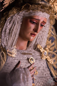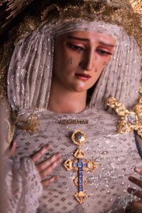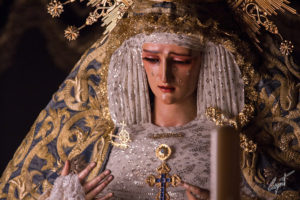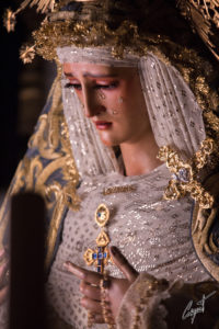 Majestuosa, la Santísima Virgen de las Lágrimas ya espera en su paso de palio la llegada de un Jueves Santo histórico para Santa Catalina.